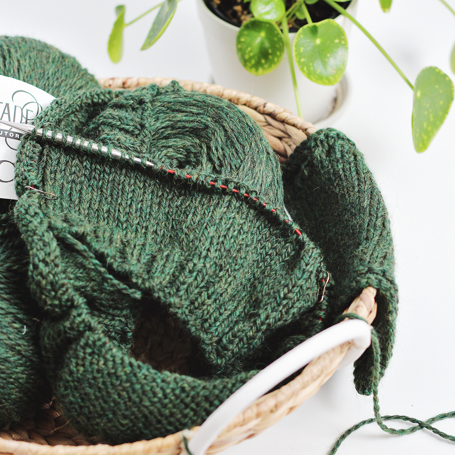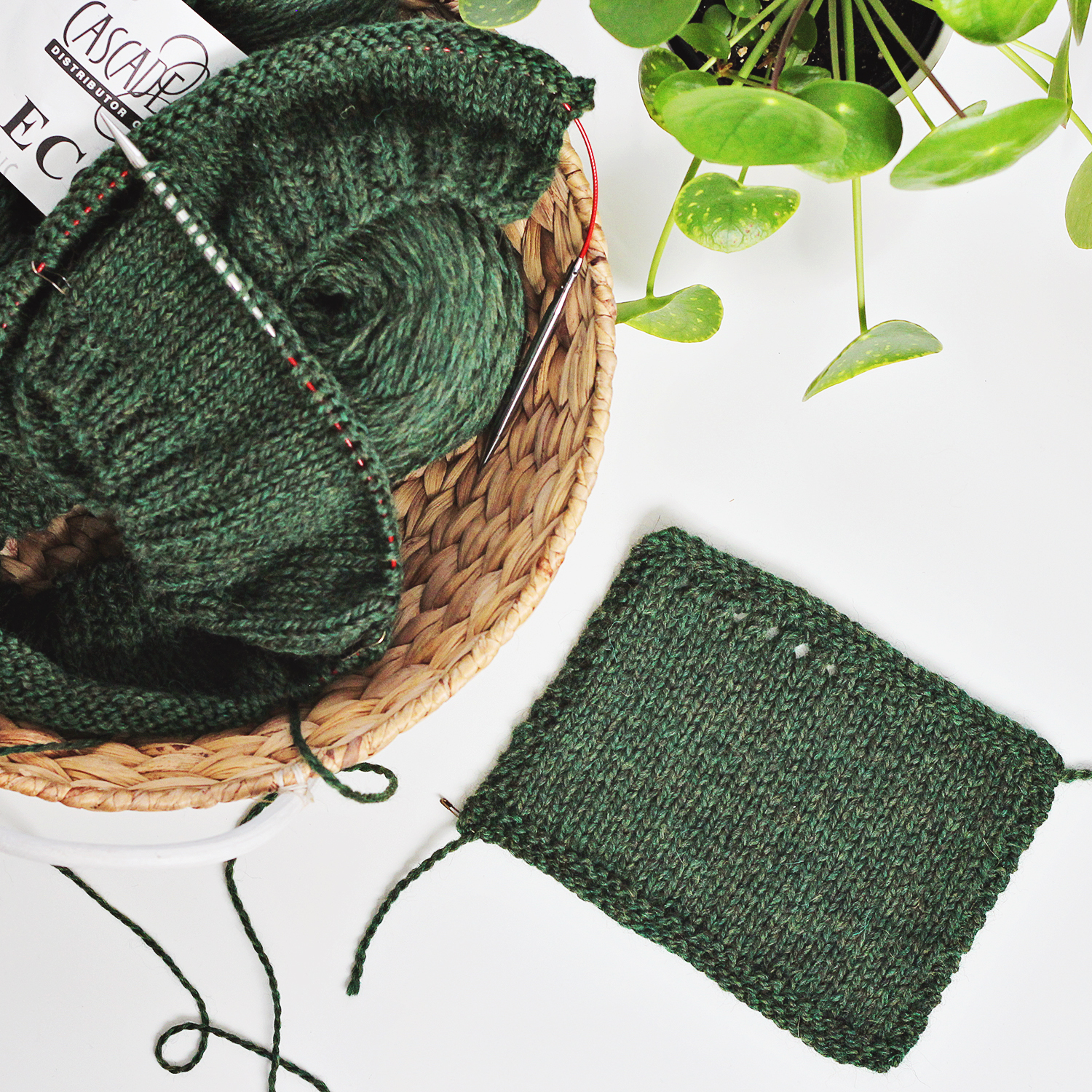 The yarn has been lovely to work with so far. It’s Cascade Eco+ in a beautiful, rich heathered green (Shire) which reminds me of woodland walks under the cool, green canopy of leaves. It’s also a lot softer than I expected – for some reason I thought it would be on the crunchy side, but it has a lovely handle and is surprisingly cool to the touch.